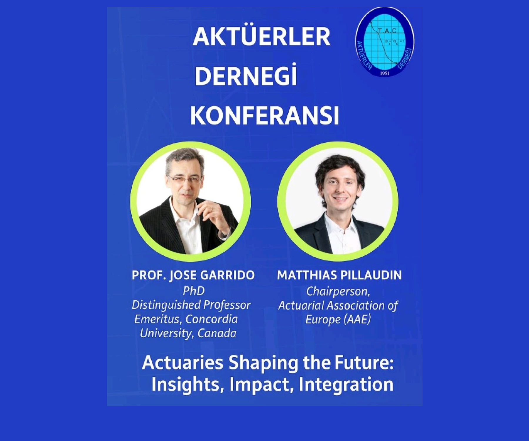 Değerli Üyelerimiz, Derneğimiz tarafından 14 Kasım 2025 tarihinde Avrupa Aktüerler Birliği (Actuarial Association of Europe - AA) başkanı Matthias Pillaudin ve Prof. Jose Garrido yer aldığı konferans düzenlenmiştir.Aktüerler...